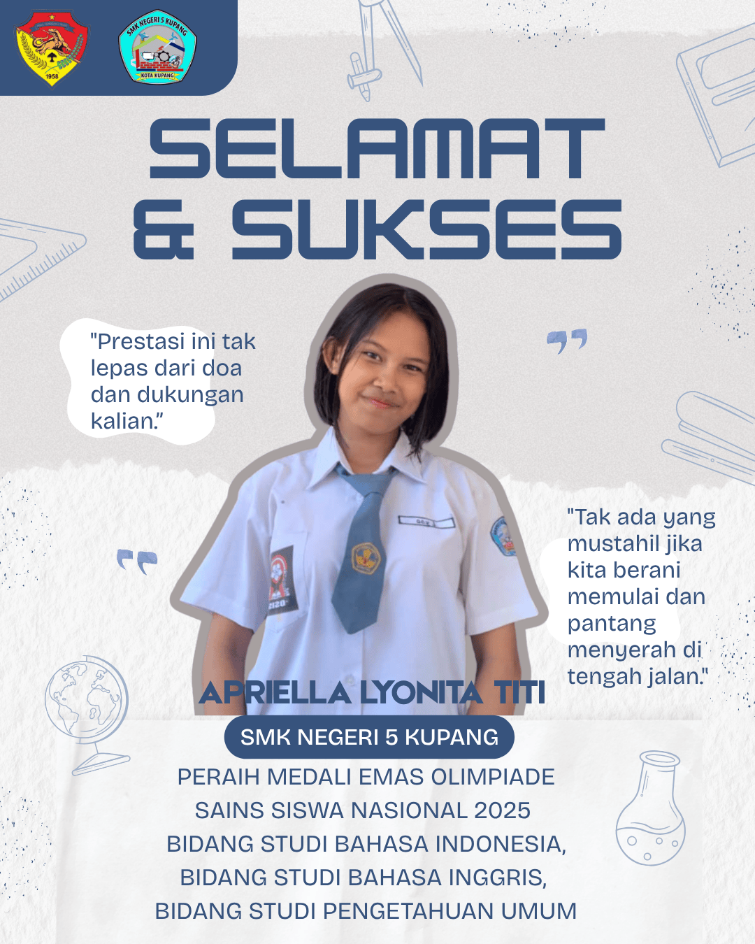 SISWA SMK NEGERI 5 KUPANG RAIH MEDALI EMAS OLIMPIADE SAINS NASIONAL.......